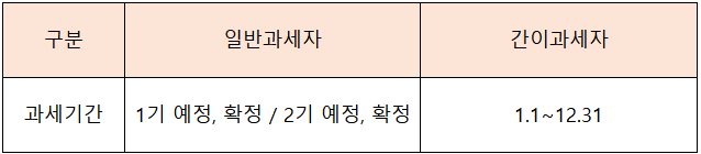 일반과세자는 6개월 마다 신고 및 납부를 해야 합니다. 예정기간에는 납부만 발생합니다.