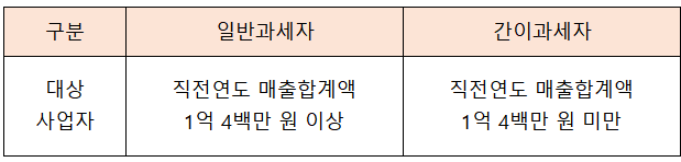 업종과 매출액에 따라 일반과세자와 간이과세자로 분류가 됩니다.