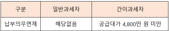 하지만 간이과세자라도 공급대가(연매출)가 4,800만 원 미만인 사업자만 납부의무 면제를 적용받을 수 있습니다.