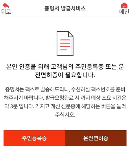 주민등록증이나 운전면허증을 준비하여 본인 인증 절차를 진행합니다.