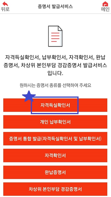 국민건강보험 앱을 보안정책상 캡처가 되지 않아 건강보험득실확인서 발급 과정을 서술로 알아보겠습니다.