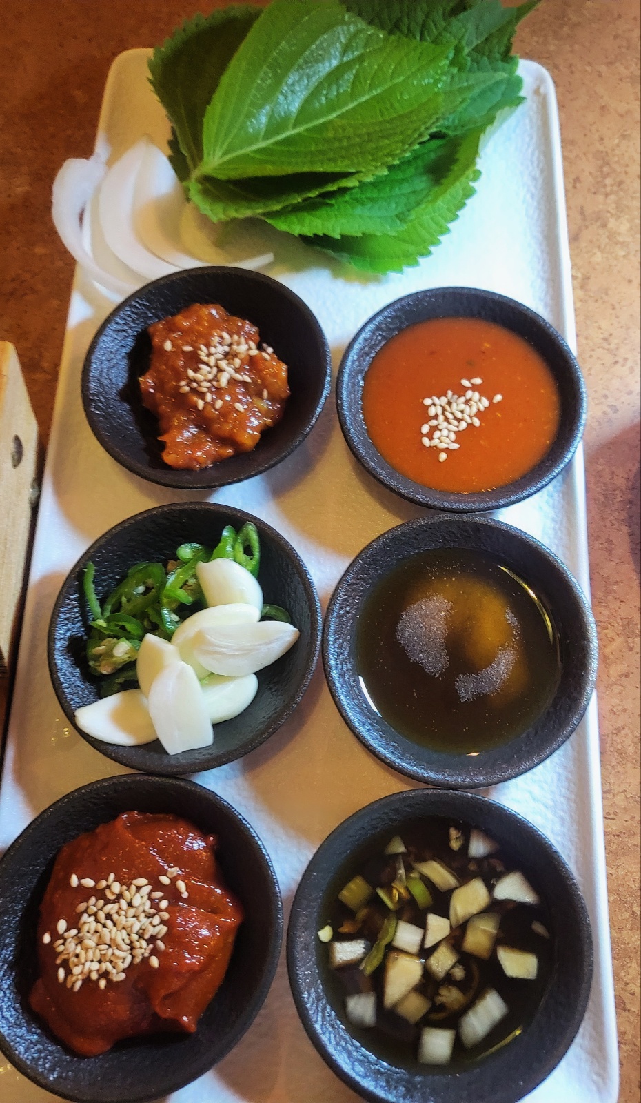 직접 만든 소스에 찍어 부추를 올려 먹으면서 음식에 대한 높은 수준의 요리 실력을 엿볼 수 있었습니다.