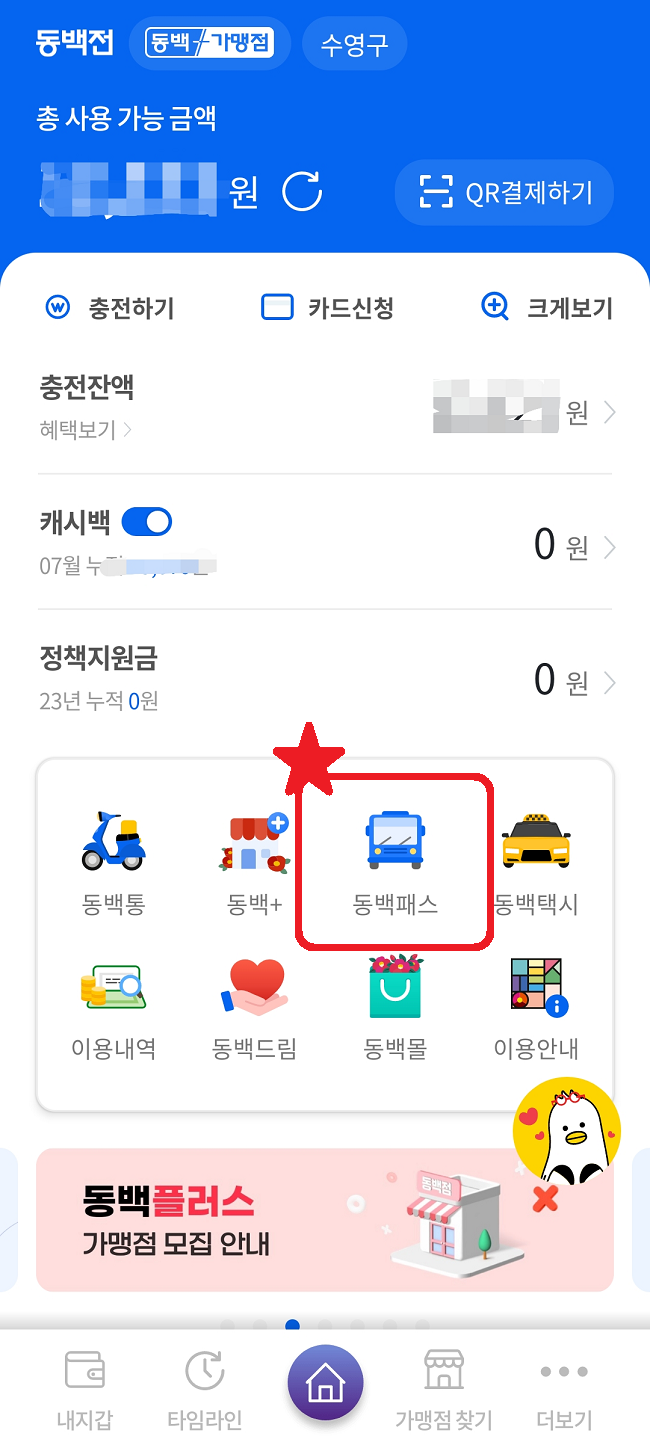 동백전 앱 화면의 중간의 「동백패스」로 들어갑니다.