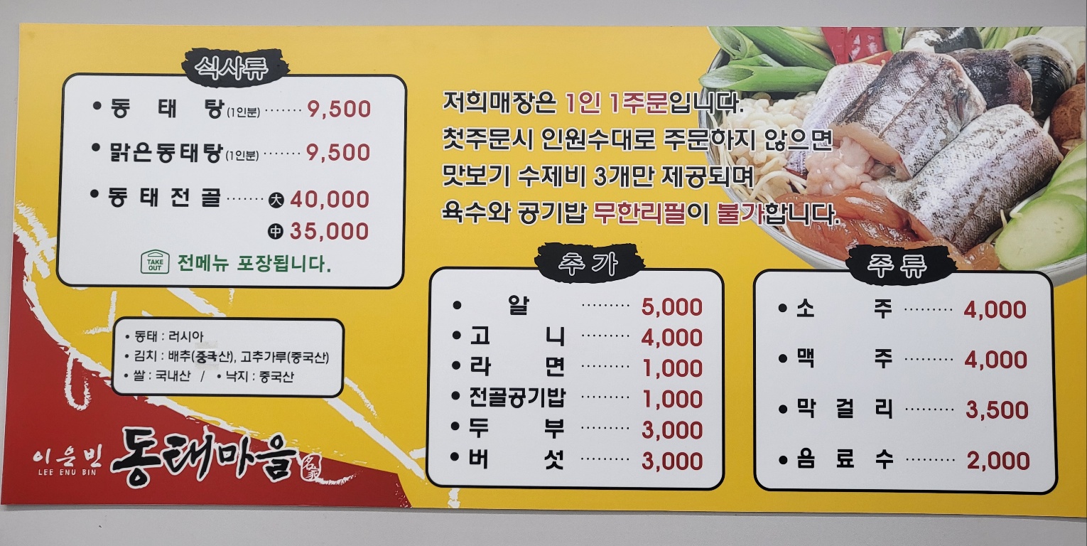 이은빈 동태마을에서는 동태탕 외에도 다양한 메뉴를 즐길 수 있습니다.