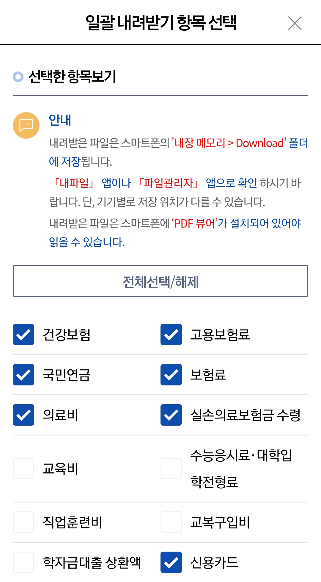 ⑤ 일괄 내려받기 항목 선택하여 저장하기