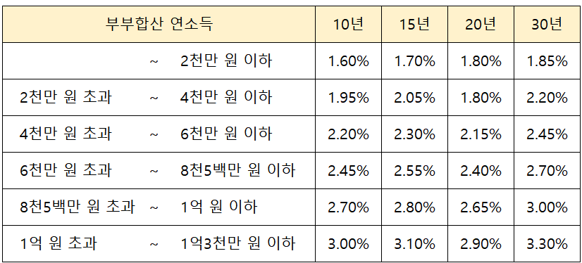 - 부부합산 연소득 8천5백만 원 이하인 경우