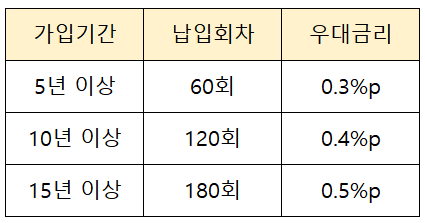 우대금리를 받을 수 있는 조건이 5가지 있습니다. 우대금리 적용 후 금리가 1.2% 미만인 경우 1.2%로 적용이 된다고 합니다.