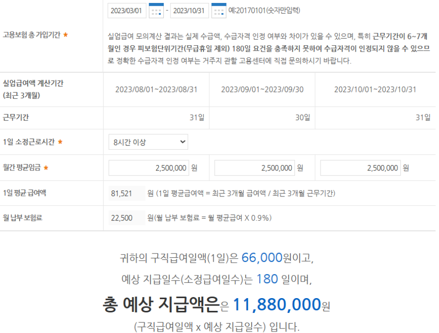 본인이 받게 될 실업급여를 아래의 내용을 통해서 간편하게 계산해 보시기 바랍니다.
