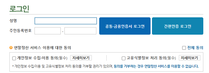 편리한 연말정산 전용 사이트에 접속하면 회원가입 없이 로그인이 가능합니다.