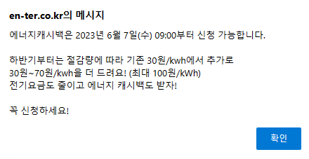 6월7일부터 적용될 캐시백 한전 에너지캐시백 지급방식
