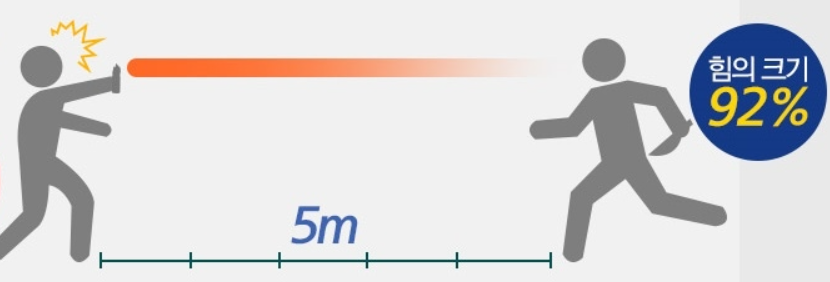 분사시간 0.1초로 쉽고 간편하게 위기 상황에 반응할 수 있고 화생방 가스보다 10배 이상 강력합니다.