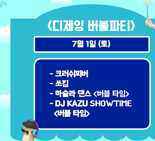 7월 1일 디제잉 버블파티 : 크러쉬피버, 쏘킴, 하슬라 댄스, DJ KAJU Show Time