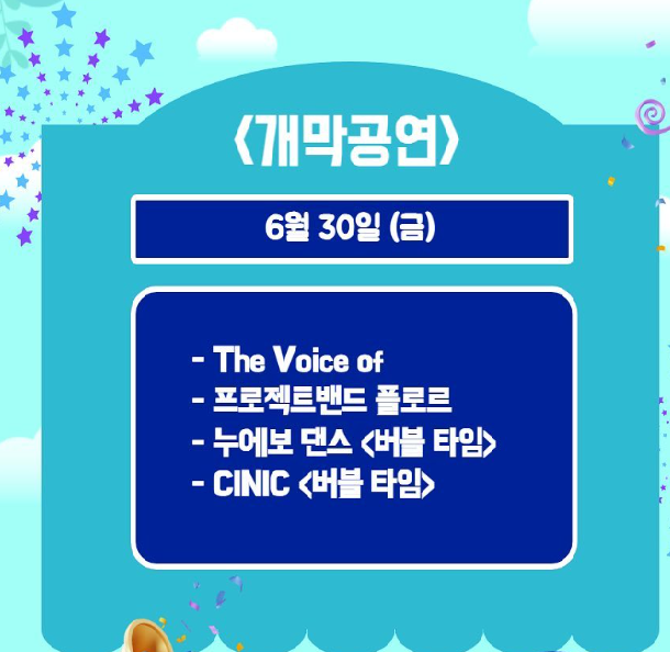 6월 30일 개막공원 : The Voice of, 프로젝트밴드 플로르, 누에보 댄스, CINIC